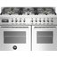 Устройства с тремя духовками также имеют один основной и две дополнительных шкафа разного объема: например, плиты Bertazzoni оснащены большой духовкой объемом 69 литров, средней объемом 54 литра и малой объемом 24 литра. Духовки располагаются в два ряда: две меньшие духовки в одном ряду, большая и ящик для посуды в другом.
