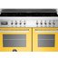 Bertazzoni PRO100 5I MFE D GI T — варочный центр в оригинальном желтом исполнении из коллекции Professional. Модель оборудована двумя вместительными духовыми шкафами и индукционной поверхностью с пятью зонами нагрева, каждая из которых поддерживает систему девятиступенчатой регулировки мощности. Для контроля режимных параметров предусмотрен информативный дисплей, дополненный сенсорными кнопками.