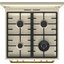 Гораздо разнообразнее представлена фурнитура в моделях в классическом, средиземноморском, деревенском или ретро-дизайне. Так, модели производства Lofra оснащаются фигурными рейлингами и поворотными переключателями цвета латуни, состаренного серебра, хрома, золота. В варочных центрах La Cornue интерес представляет круглая накладная ручка дверцы духовки серебристого цвета. Фурнитурой в стиле ретро оснащаются варочные центры производства Smeg, Kaiser, Bertazzoni, но особенно разнообразны и оригинальны модели производства итальянской компании Restart с фурнитурой из меди и латуни. Каждая такая модель изготавливается по индивидуальному проекту, и покупатель может выбрать цвет и форму переключателей, дверцы и ручек духовых шкафов и другие элементы дизайна.