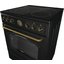 Устройства с тремя духовками также имеют один основной и две дополнительных шкафа разного объема: например, плиты Bertazzoni оснащены большой духовкой объемом 69 литров, средней объемом 54 литра и малой объемом 24 литра. Духовки располагаются в два ряда: две меньшие духовки в одном ряду, большая и ящик для посуды в другом.