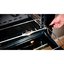 Телескопические направляющие представляют собой металлические полозья, которые можно выдвинуть из камеры вместе с находящимся на них противнем. Это самый безопасный вариант, поскольку пользователь касается противней только снаружи, не помещая руки в нагретую камеру. Благодаря специальным фиксаторам готовое блюдо можно оставить для остывания, не убирая его с направляющих.