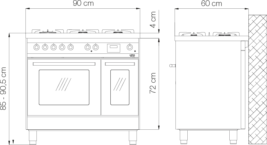 Габариты устройства — от 85 до 90,5 см в высоту, 90 см в ширину и 60 см в глубину — позволяют органично встроить технику в просторные кухонные гарнитуры, сохраняя пропорции интерьера. Подключение к газовой магистрали и электросети обеспечивает стабильную работу всех систем, включая электронные таймеры, защиту от перегрева и блокировку от случайного включения.