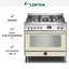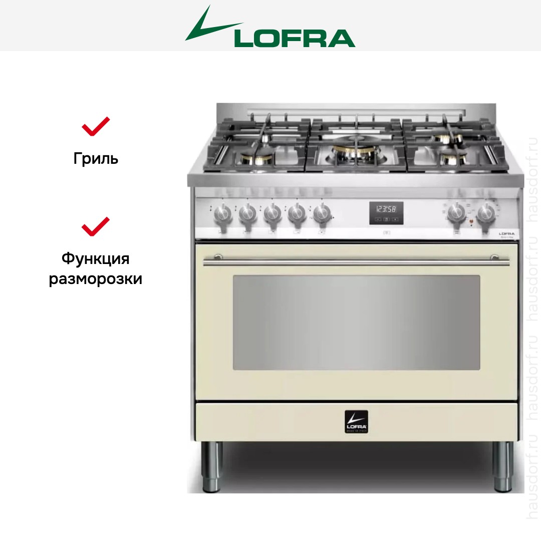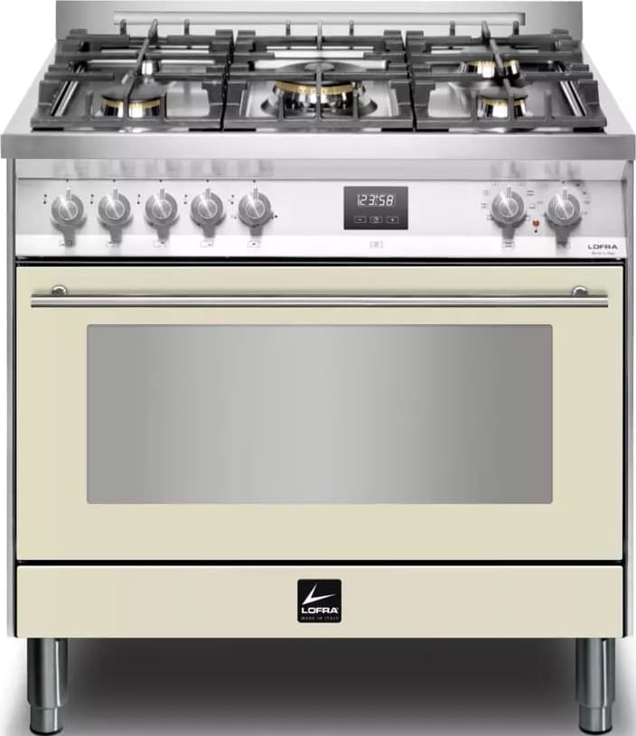 Варочный центр Lofra PBIG96WMFT-AEO — элегантный кухонный прибор в стиле Venezia, где классический бежевый оттенок сочетается с элементами из нержавеющей стали, создавая теплое и одновременно надежное впечатление. По габаритам прибор занимает достаточно большое место на кухне — 85-90,5 см в высоту, 90 см в ширину и 60 см в глубину. Комбинация газовой поверхности и электрической камеры предоставляет вам преимущества обоих видов топлива: газовая варочная панель с пятью конфорками даёт мгновенную регулировку пламени, а электрическая камера гарантирует точный контроль температуры и разнообразие функций.