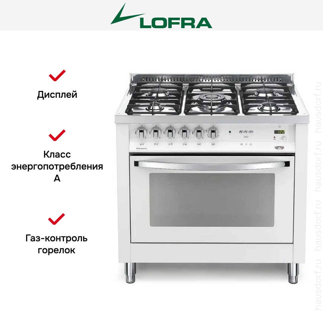 Комбинированная плита Lofra PBPG86GVT/C — отличный выбор как для квартиры, так и для частного дома. Цвет корпуса белый жемчуг, он гармонично сочетается с мебелью и техникой похожих оттенков, а также может интересно выглядеть на контрасте с ними. Для управления используется удобная и понятная механическая система. Благодаря ей выбирать режимы приготовления и настраивать параметры температуры очень просто. Основная информация о процессе отображается на дисплее. Переключатели не только выполняют техническую функцию, но и поддерживают общий дизайн; тип элементов: поворотные + кнопки.