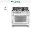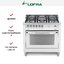 Устройства с тремя духовками также имеют один основной и две дополнительных шкафа разного объема: например, плиты Bertazzoni оснащены большой духовкой объемом 69 литров, средней объемом 54 литра и малой объемом 24 литра. Духовки располагаются в два ряда: две меньшие духовки в одном ряду, большая и ящик для посуды в другом.