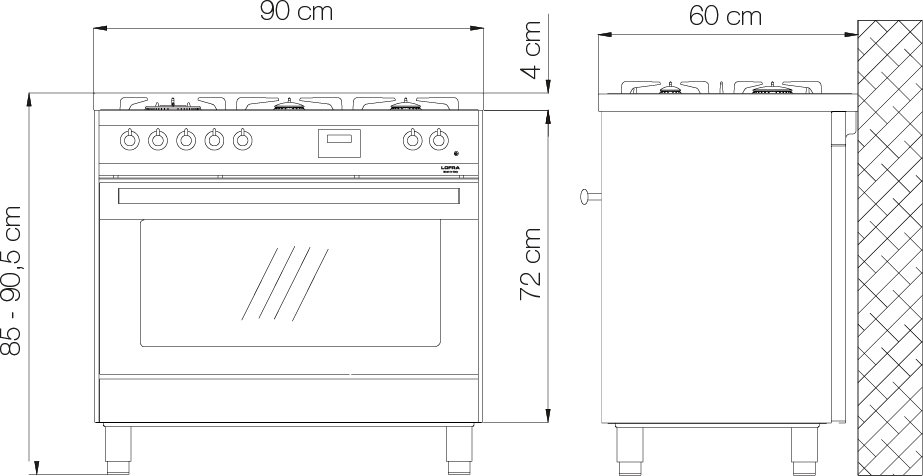 Ширина варочных центров — параметр, которых варьируется в самых больших пределах. Она зависит прежде всего от характеристик модели, в частности, от количества духовок. Производители предлагают модели минимальной шириной 59-60 см с одной духовкой. В магазинах также представлены модели с одной духовкой увеличенной ширины, которая достигает 90 см. Такую же ширину могут иметь варочные центры с двумя духовками, расположенными бок о бок. Модели Lofra с тремя духовками имеют ширину 120 см, а максимальная ширина около 196-200 см отличает модели Restart с дровяной печью и несколькими духовками.