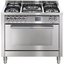Устройства с тремя духовками также имеют один основной и две дополнительных шкафа разного объема: например, плиты Bertazzoni оснащены большой духовкой объемом 69 литров, средней объемом 54 литра и малой объемом 24 литра. Духовки располагаются в два ряда: две меньшие духовки в одном ряду, большая и ящик для посуды в другом.