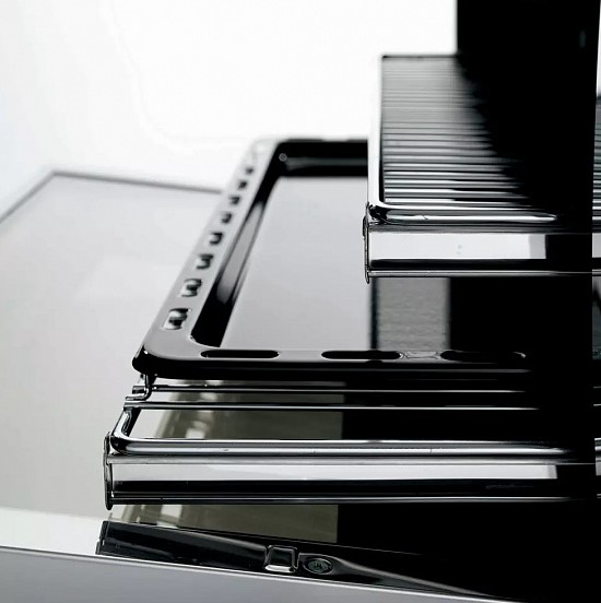 Устройства с тремя духовками также имеют один основной и две дополнительных шкафа разного объема: например, плиты Bertazzoni оснащены большой духовкой объемом 69 литров, средней объемом 54 литра и малой объемом 24 литра. Духовки располагаются в два ряда: две меньшие духовки в одном ряду, большая и ящик для посуды в другом.