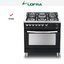 Устройства с тремя духовками также имеют один основной и две дополнительных шкафа разного объема: например, плиты Bertazzoni оснащены большой духовкой объемом 69 литров, средней объемом 54 литра и малой объемом 24 литра. Духовки располагаются в два ряда: две меньшие духовки в одном ряду, большая и ящик для посуды в другом.