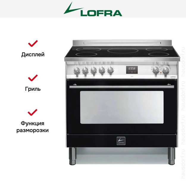 Электрическая плита Lofra PNMG96WMFT/5I — отличный выбор как для квартиры, так и для частного дома. Цвет корпуса черный, он гармонично сочетается с мебелью и техникой похожих оттенков, а также может интересно выглядеть на контрасте с ними. Для управления используется удобная и понятная электронная система. Благодаря ей выбирать режимы приготовления и настраивать параметры температуры очень просто. Основная информация о процессе отображается на дисплее. Переключатели не только выполняют техническую функцию, но и поддерживают общий дизайн; тип элементов: сенсорные + поворотные.