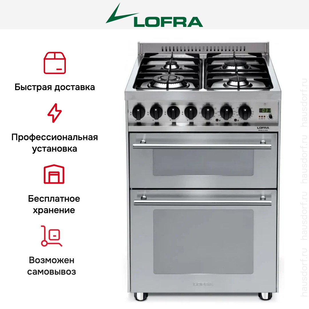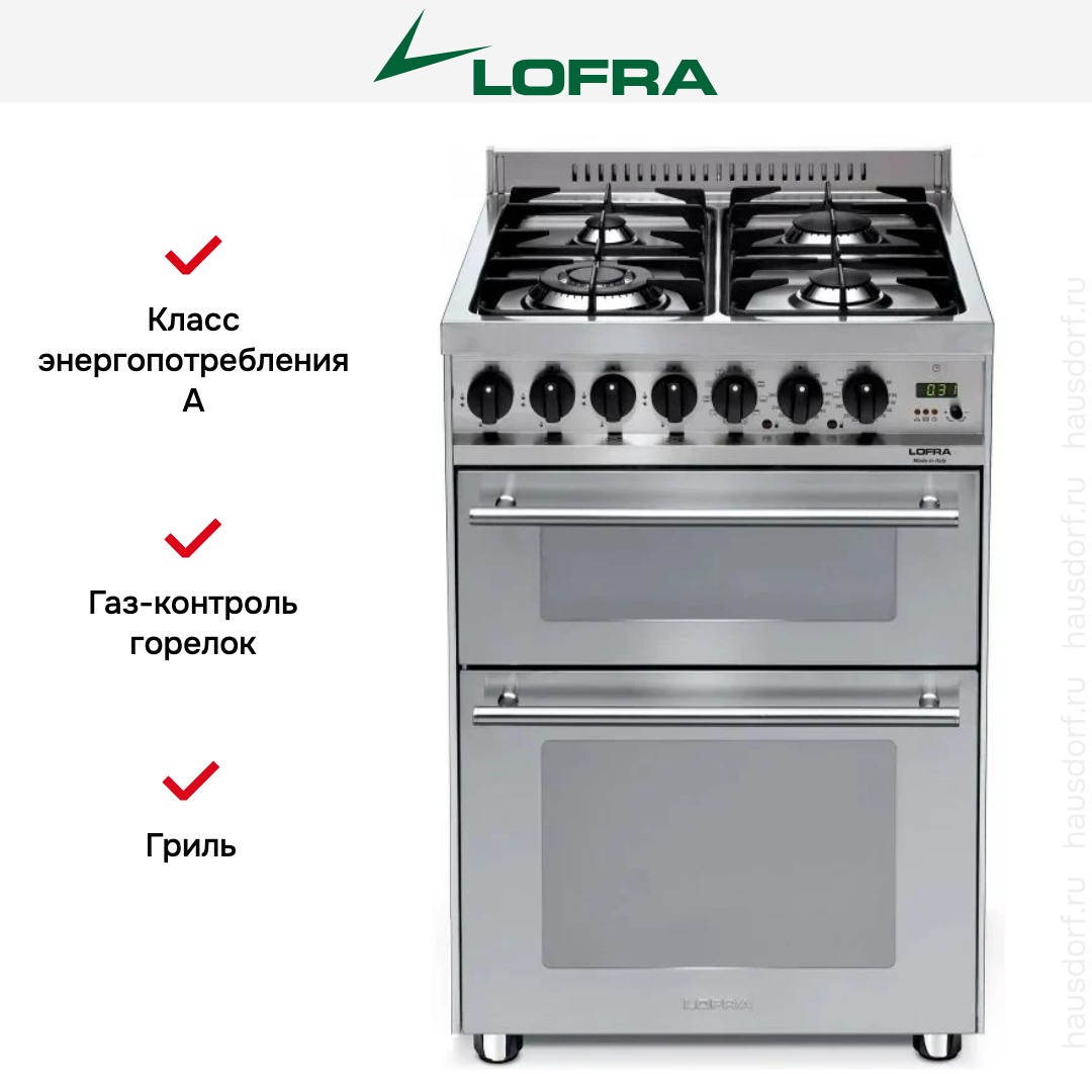 Варочный центр Лофра оборудован несколькими духовками; одну из них можно использовать как основную на постоянной основе, другие как дополнительные. Тип нагрева в камере — электрический. Вместимость составляет 107 л. Размещайте противни на разной высоте в зависимости от режима или желаемого результата.