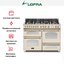 Устройства с тремя духовками также имеют один основной и две дополнительных шкафа разного объема: например, плиты Bertazzoni оснащены большой духовкой объемом 69 литров, средней объемом 54 литра и малой объемом 24 литра. Духовки располагаются в два ряда: две меньшие духовки в одном ряду, большая и ящик для посуды в другом.