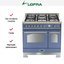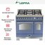 Стильный варочный центр нежного лавандового цвета подойдет светлой кухне, впишется в псевдодеревенский, прованский и подобный стиль. Работает от газа и электричества. Варочная панель оборудована пятью горелками — четыре по бокам и одна большая зона WOK в центре. Оба духовых шкафа имеют вертелы, на которых удобно прожаривать и запекать мясо.