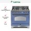 Устройства с тремя духовками также имеют один основной и две дополнительных шкафа разного объема: например, плиты Bertazzoni оснащены большой духовкой объемом 69 литров, средней объемом 54 литра и малой объемом 24 литра. Духовки располагаются в два ряда: две меньшие духовки в одном ряду, большая и ящик для посуды в другом.