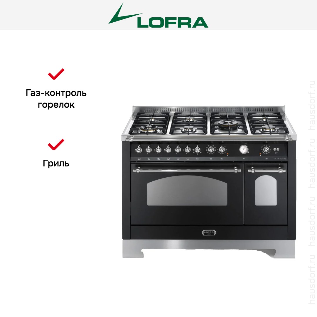Варочный центр Лофра оборудован несколькими духовками; одну из них можно использовать как основную на постоянной основе, другие как дополнительные. Тип нагрева в камере — электрический. Размещайте противни на разной высоте в зависимости от режима или желаемого результата.