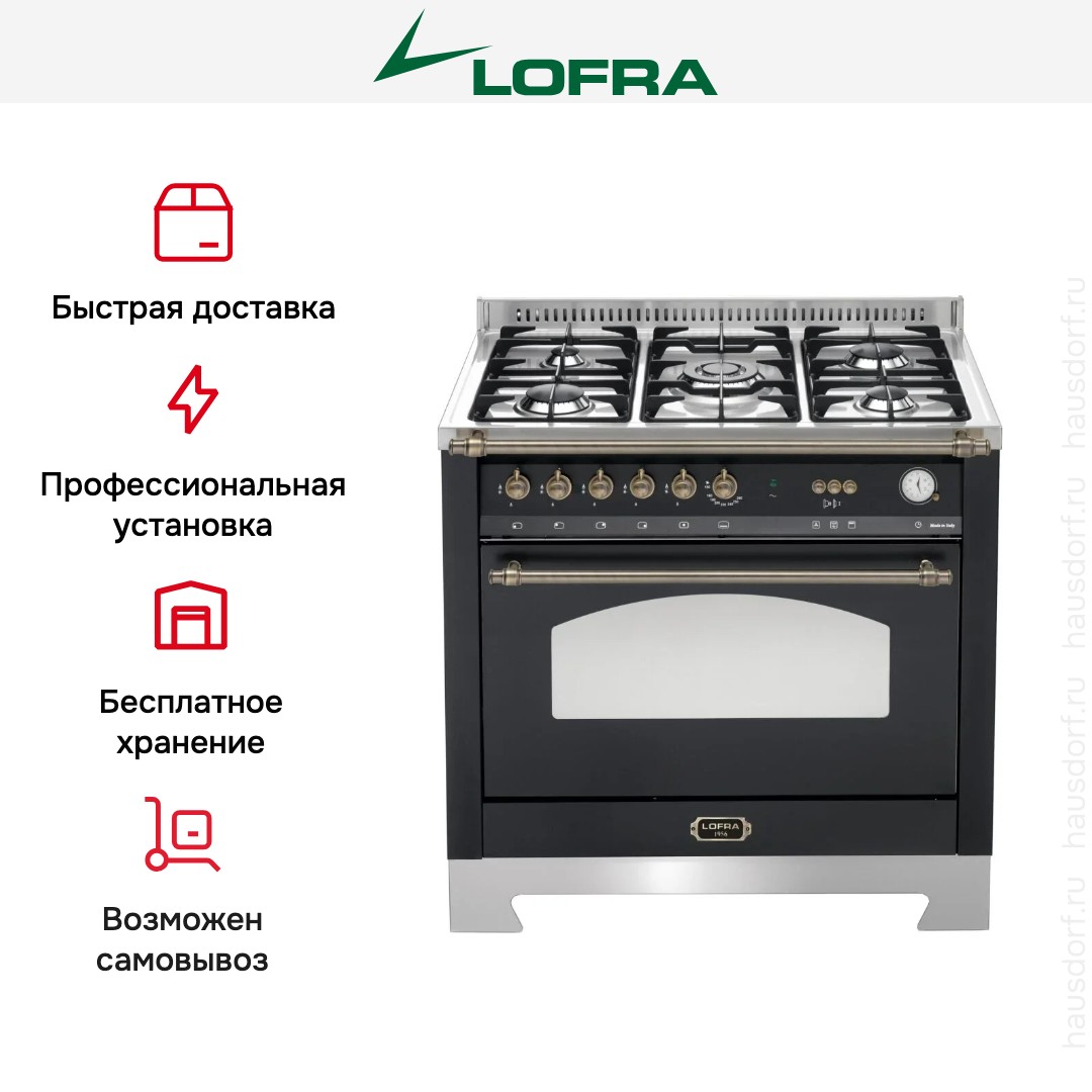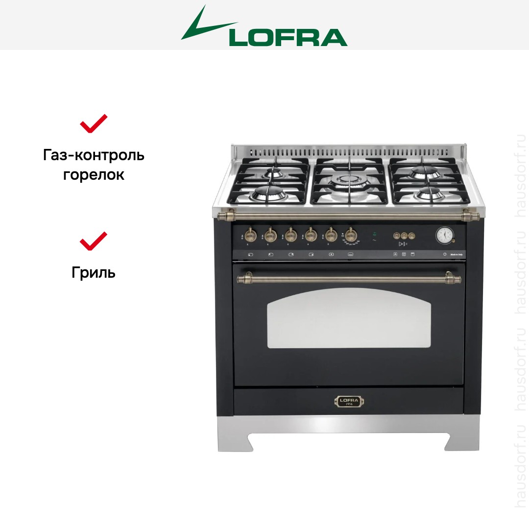 Газовая плита Lofra RNMG96GVGT/Ci Bronze — отличный выбор как для квартиры, так и для частного дома. Цвет корпуса черный, он гармонично сочетается с мебелью и техникой похожих оттенков, а также может интересно выглядеть на контрасте с ними. Для управления используется удобная и понятная механическая система. Благодаря ей выбирать режимы приготовления и настраивать параметры температуры очень просто. Переключатели не только выполняют техническую функцию, но и поддерживают общий дизайн; тип элементов: поворотные.