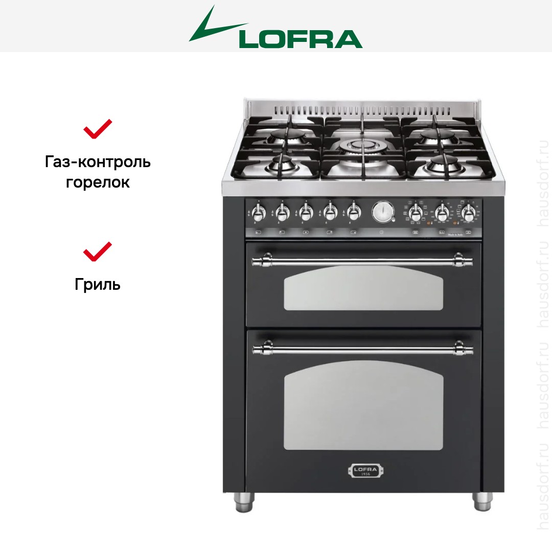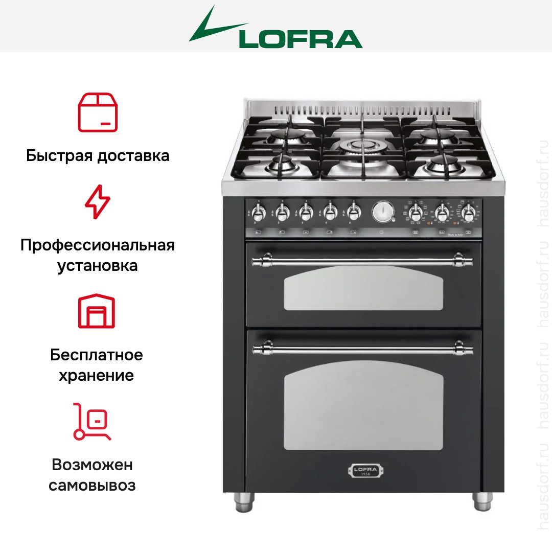 Варочный центр Лофра оборудован несколькими духовками; одну из них можно использовать как основную на постоянной основе, другие как дополнительные. Тип нагрева в камере — электрический. Размещайте противни на разной высоте в зависимости от режима или желаемого результата.