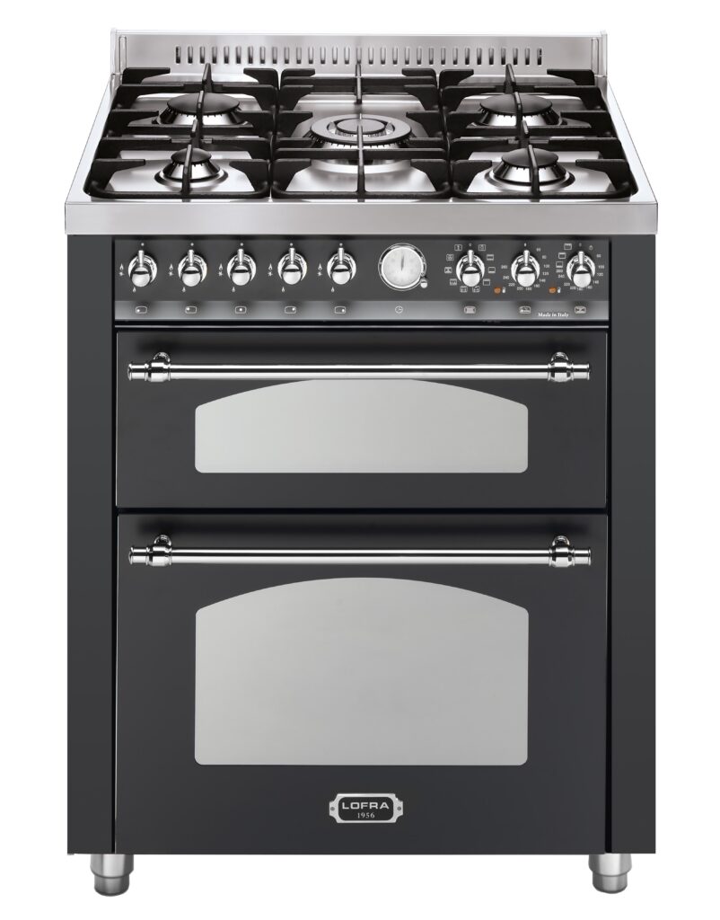 Комбинированная плита Lofra RNMUD76MFTE/CI Chrome — отличный выбор как для квартиры, так и для частного дома. Цвет корпуса черный, он гармонично сочетается с мебелью и техникой похожих оттенков, а также может интересно выглядеть на контрасте с ними. Для управления используется удобная и понятная механическая система. Благодаря ей выбирать режимы приготовления и настраивать параметры температуры очень просто. Переключатели не только выполняют техническую функцию, но и поддерживают общий дизайн; тип элементов: поворотные.