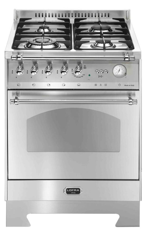 Газовая плита Lofra RS66GVGT/Ci Chrome — отличный выбор как для квартиры, так и для частного дома. Цвет корпуса нержавеющая сталь, он гармонично сочетается с мебелью и техникой похожих оттенков, а также может интересно выглядеть на контрасте с ними. Для управления используется удобная и понятная механическая система. Благодаря ей выбирать режимы приготовления и настраивать параметры температуры очень просто. Переключатели не только выполняют техническую функцию, но и поддерживают общий дизайн; тип элементов: поворотные.