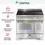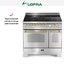 Устройства с тремя духовками также имеют один основной и две дополнительных шкафа разного объема: например, плиты Bertazzoni оснащены большой духовкой объемом 69 литров, средней объемом 54 литра и малой объемом 24 литра. Духовки располагаются в два ряда: две меньшие духовки в одном ряду, большая и ящик для посуды в другом.