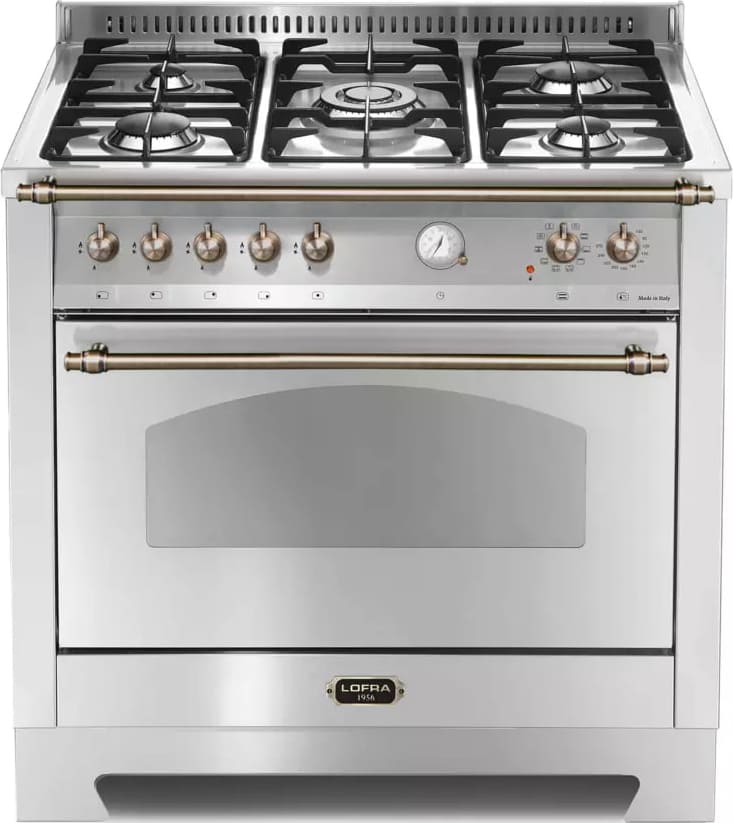 Варочный центр Lofra RSG96MFT/CI BRONZE — это изысканное сочетание итальянского дизайна, надёжной инженерии и высокой функциональности, созданное для тех, кто ценит элегантность и мощь на кухне. Модель работает в газо-электрическом формате: газовая варочная поверхность с пятью конфорками разной интенсивности обеспечивает мгновенный нагрев и точный контроль пламени, а вместительная электрическая духовка — равномерное распределение тепла для безупречного запекания, выпечки и гриля.