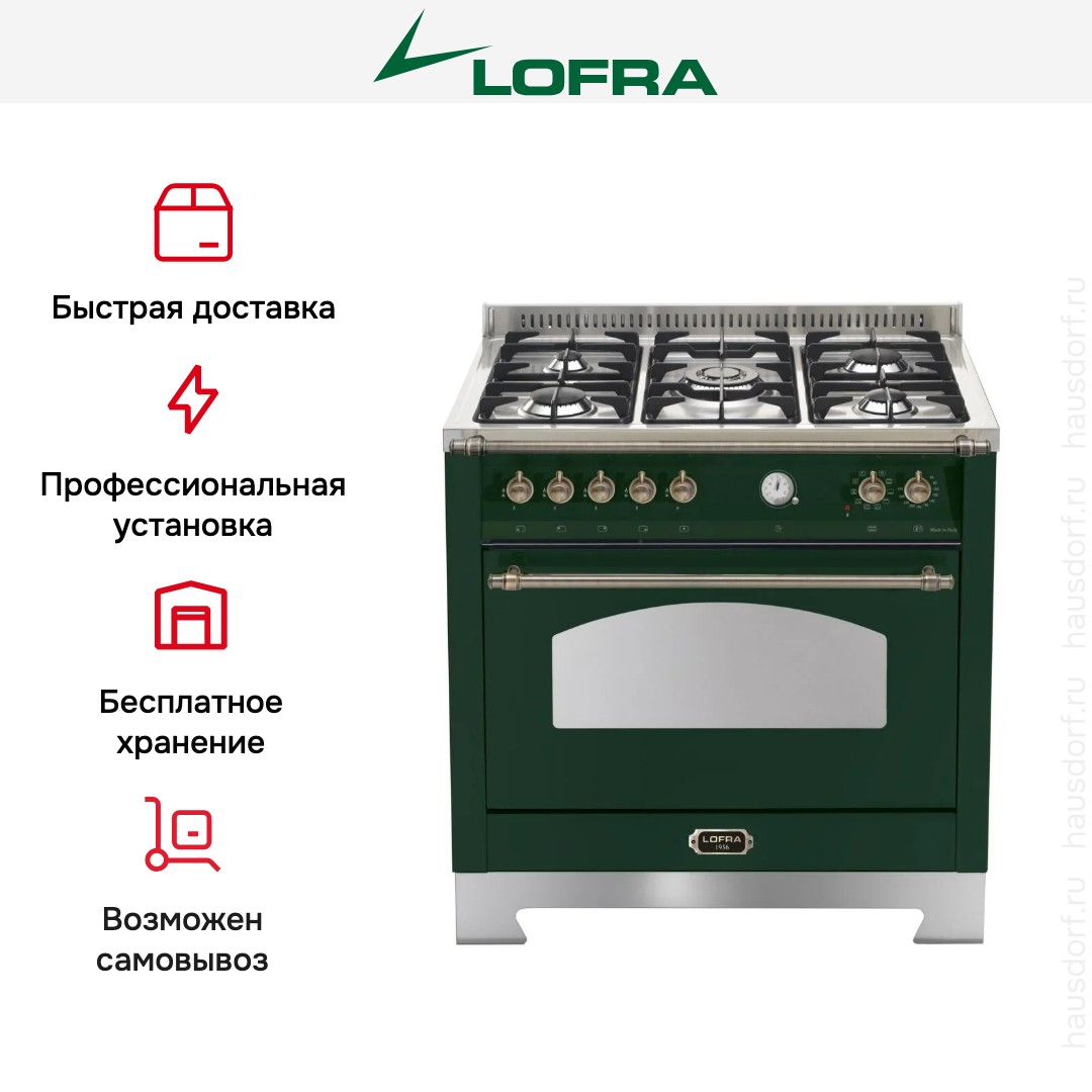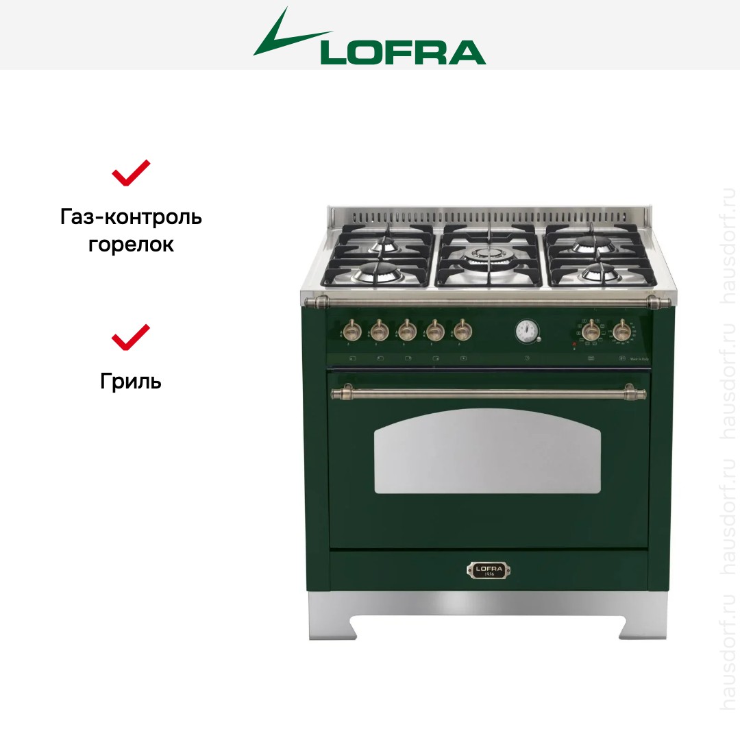Комбинированная плита Lofra RVG96MFT/Ci Bronze — отличный выбор как для квартиры, так и для частного дома. Цвет корпуса зеленый, он гармонично сочетается с мебелью и техникой похожих оттенков, а также может интересно выглядеть на контрасте с ними. Для управления используется удобная и понятная механическая система. Благодаря ей выбирать режимы приготовления и настраивать параметры температуры очень просто. Переключатели не только выполняют техническую функцию, но и поддерживают общий дизайн; тип элементов: поворотные.