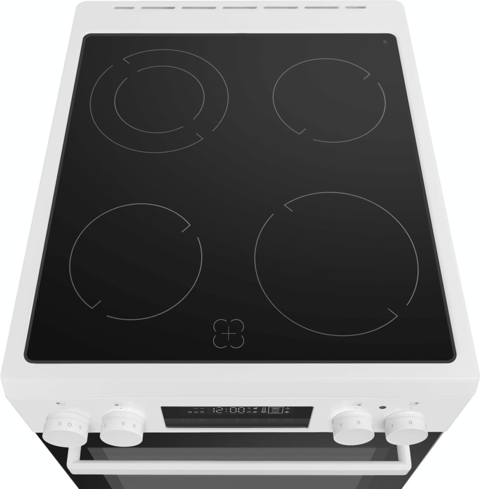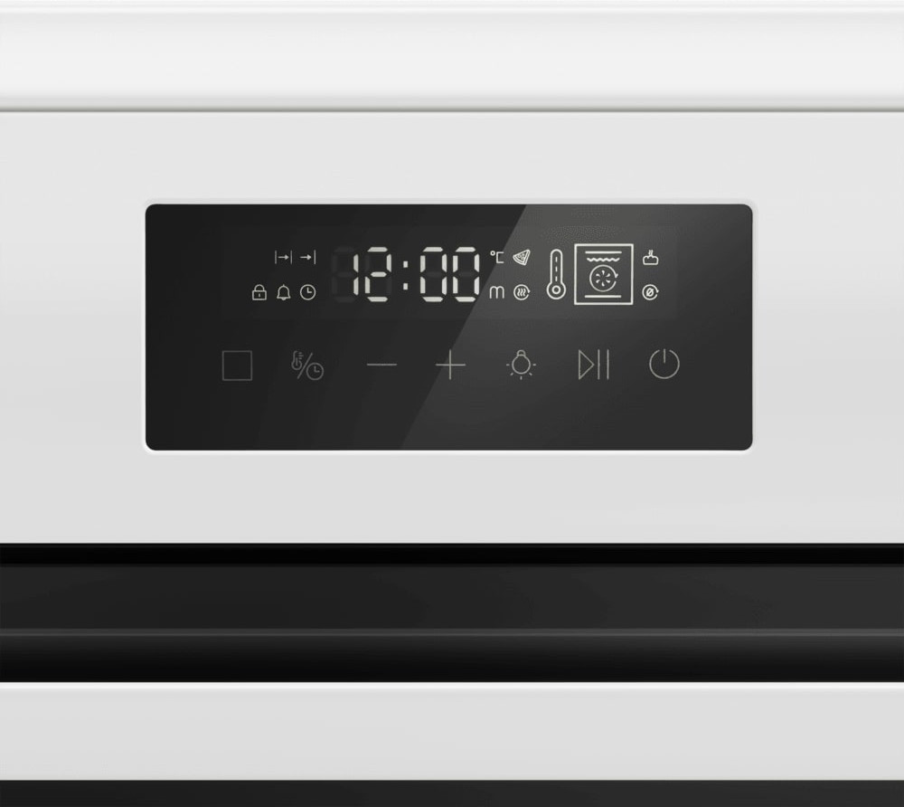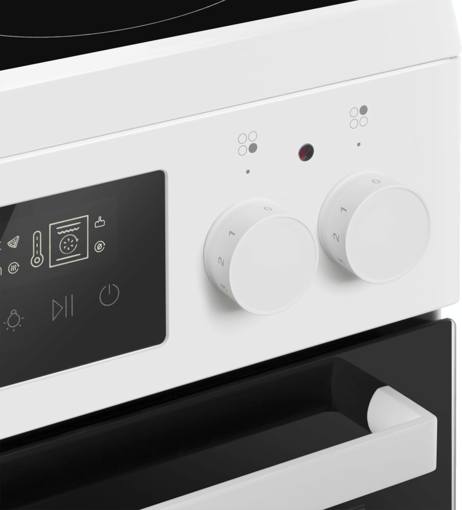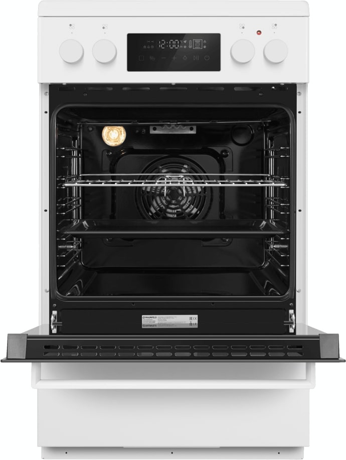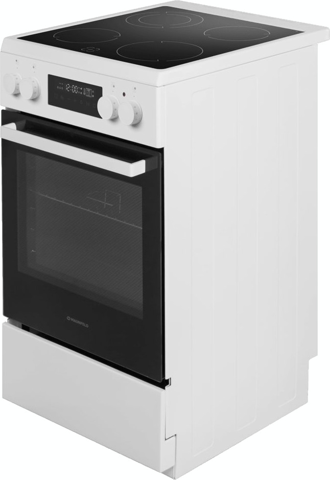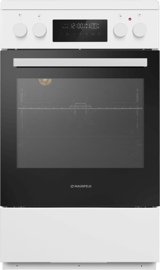 Электрическая плита Maunfeld MEC511CW09TD — отличный выбор как для квартиры, так и для частного дома. Цвет корпуса белый, он гармонично сочетается с мебелью и техникой похожих оттенков, а также может интересно выглядеть на контрасте с ними. На внутренней поверхности двери расположена таблица доступных рецептов — полезная и необычная фишка. Для управления используется удобная и понятная электронная система. Благодаря ей выбирать режимы приготовления и настраивать параметры температуры очень просто. Основная информация о процессе отображается на дисплее. Переключатели не только выполняют техническую функцию, но и поддерживают общий дизайн; тип элементов: сенсорные + поворотные.