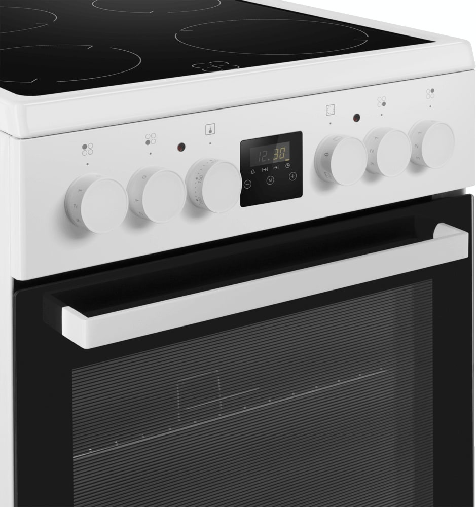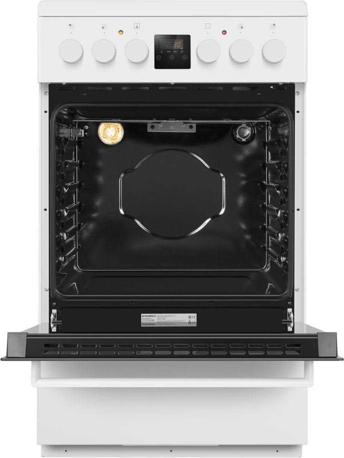 Электрическая плита Maunfeld MEC55CW08D — отличный выбор как для квартиры, так и для частного дома. Цвет корпуса белый, он гармонично сочетается с мебелью и техникой похожих оттенков, а также может интересно выглядеть на контрасте с ними. На внутренней поверхности двери расположена таблица доступных рецептов — полезная и необычная фишка. Для управления используется удобная и понятная электронная система. Благодаря ей выбирать режимы приготовления и настраивать параметры температуры очень просто. Основная информация о процессе отображается на дисплее. Переключатели не только выполняют техническую функцию, но и поддерживают общий дизайн; тип элементов: сенсорные + поворотные.