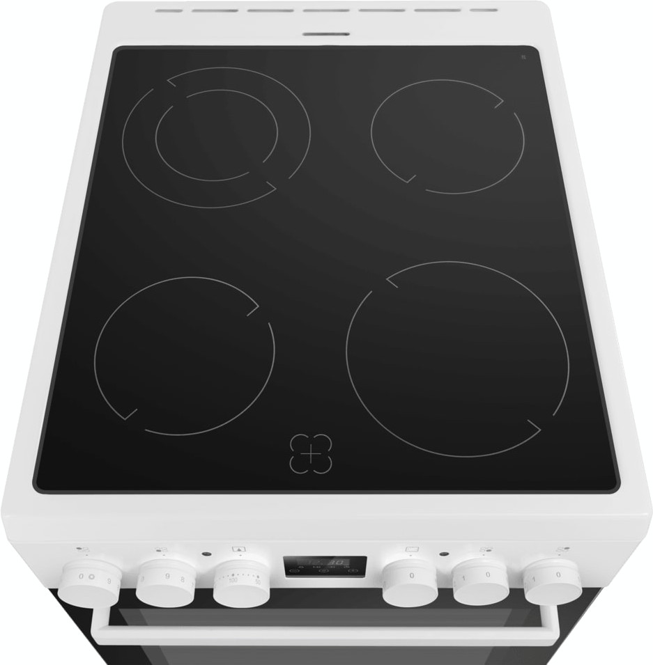 Электрическая плита Maunfeld MEC57CW08TD — отличный выбор как для квартиры, так и для частного дома. Цвет корпуса белый, он гармонично сочетается с мебелью и техникой похожих оттенков, а также может интересно выглядеть на контрасте с ними. На внутренней поверхности двери расположена таблица доступных рецептов — полезная и необычная фишка. Для управления используется удобная и понятная электронная система. Благодаря ей выбирать режимы приготовления и настраивать параметры температуры очень просто. Основная информация о процессе отображается на дисплее. Переключатели не только выполняют техническую функцию, но и поддерживают общий дизайн; тип элементов: сенсорные + поворотные.