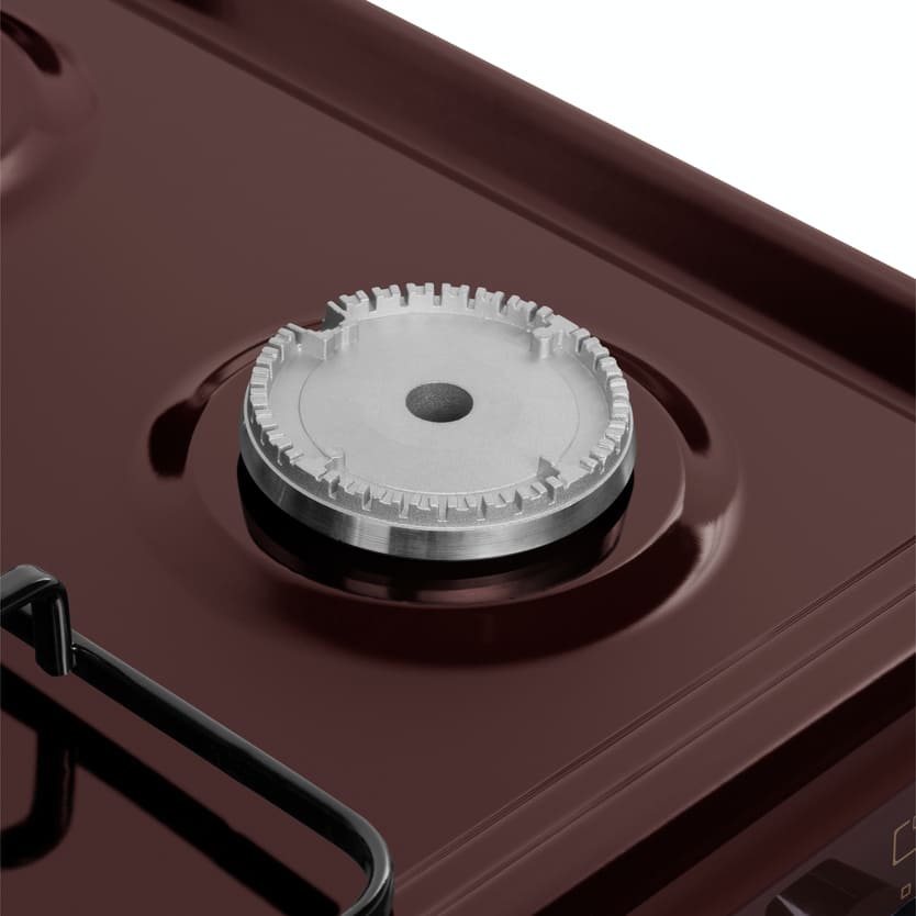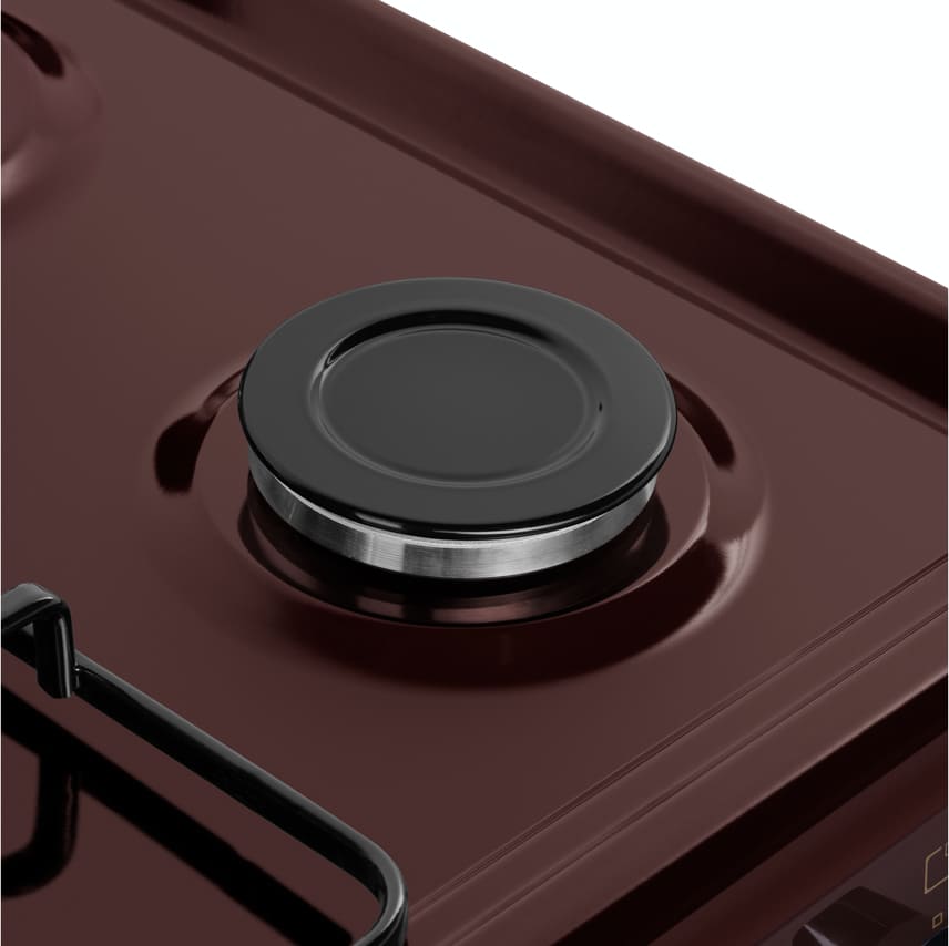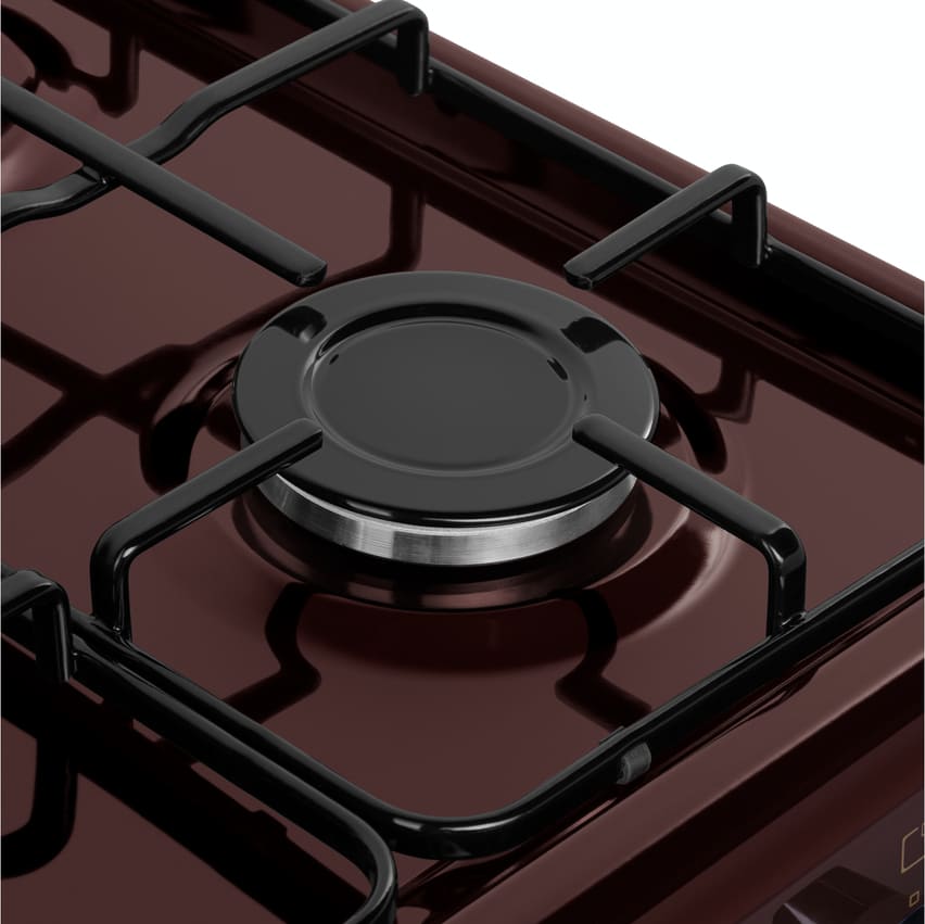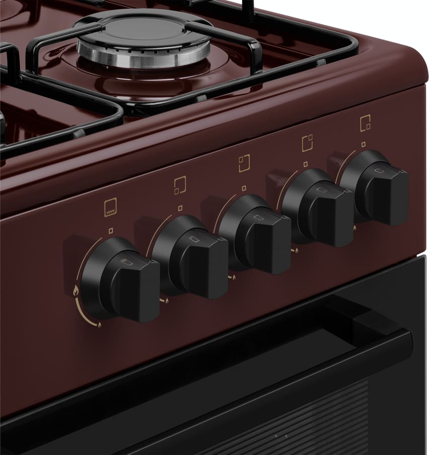 Газовая плита Maunfeld MGC50GEBR01D — отличный выбор как для квартиры, так и для частного дома. Цвет корпуса коричневый, он гармонично сочетается с мебелью и техникой похожих оттенков, а также может интересно выглядеть на контрасте с ними. Для управления используется удобная и понятная механическая система. Благодаря ей выбирать режимы приготовления и настраивать параметры температуры очень просто. Переключатели не только выполняют техническую функцию, но и поддерживают общий дизайн; тип элементов: поворотные.