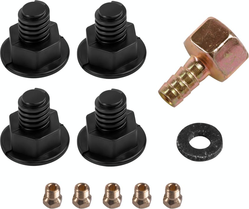 Форсунки, которые позволяют переключиться с природного на баллонный газ. Их можно установить под конфорками, чтобы топливо преобразовывалось в привычный нам огонь. Жиклеры представляют собой болты с отверстиями, которые диаметром соответствуют мощности конфорок.