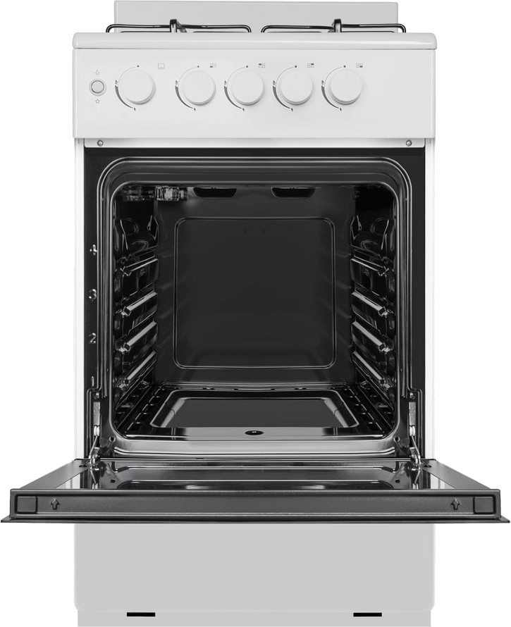 В данной модели установлена газовая варочная поверхность — эффективный нагрев, специальные механизмы для защиты вас от ожогов, плавная регулировка мощности. Стандартное количество конфорок — 4 штуки — подходит большинству пользователей. Панель сделана из металла, который обеспечивает надежность и долгий срок службы; за ней легко ухаживать.