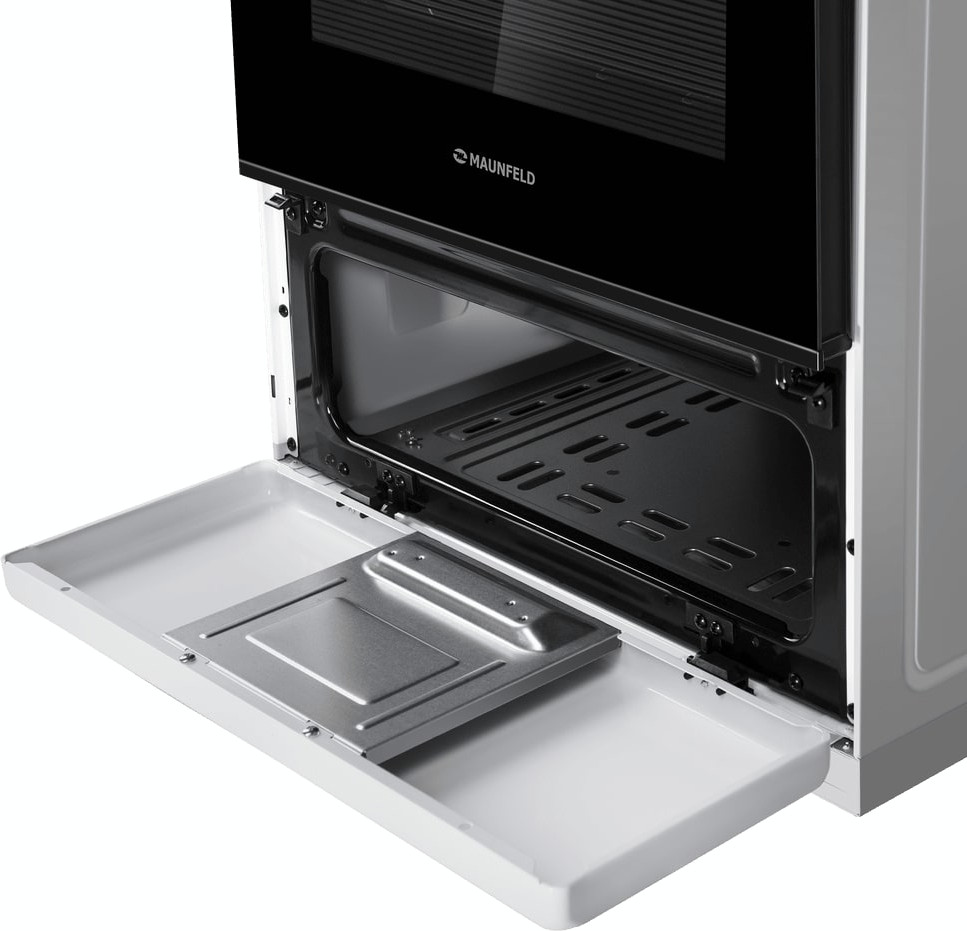 Газовая плита Maunfeld MGC50GEW08 — отличный выбор как для квартиры, так и для частного дома. Цвет корпуса белый, он гармонично сочетается с мебелью и техникой похожих оттенков, а также может интересно выглядеть на контрасте с ними. Для управления используется удобная и понятная механическая система. Благодаря ей выбирать режимы приготовления и настраивать параметры температуры очень просто. Переключатели не только выполняют техническую функцию, но и поддерживают общий дизайн; тип элементов: поворотные + кнопки.