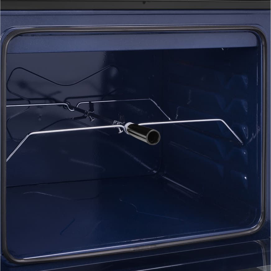Внутренняя поверхность имеет специальное защитное покрытие: эмаль хорошо аккумулирует и держит тепло, не нуждается в специфическом уходе. Следуйте инструкции для удаления загрязнений — и прибор прослужит вам много лет без повреждений. Продуманная система направляющих для противней предупреждает падение тяжелой посуды при ее загрузке и извлечении: в этой модели используются рельефные элементы. Приятный бонус — специальное отделение для хранения посуды и аксессуаров.