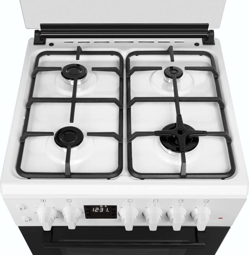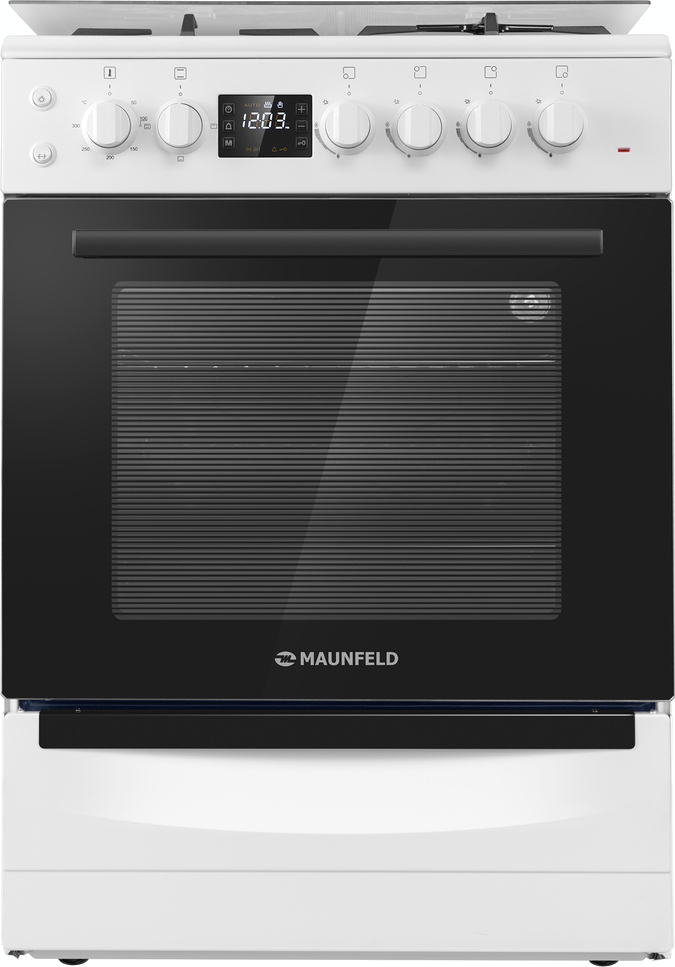 Комбинированная плита Maunfeld MGC60ECW05 — отличный выбор как для квартиры, так и для частного дома. Цвет корпуса белый, он гармонично сочетается с мебелью и техникой похожих оттенков, а также может интересно выглядеть на контрасте с ними. Для управления используется удобная и понятная электронная система. Благодаря ей выбирать режимы приготовления и настраивать параметры температуры очень просто. Основная информация о процессе отображается на дисплее. Переключатели не только выполняют техническую функцию, но и поддерживают общий дизайн; тип элементов: поворотные + кнопки.