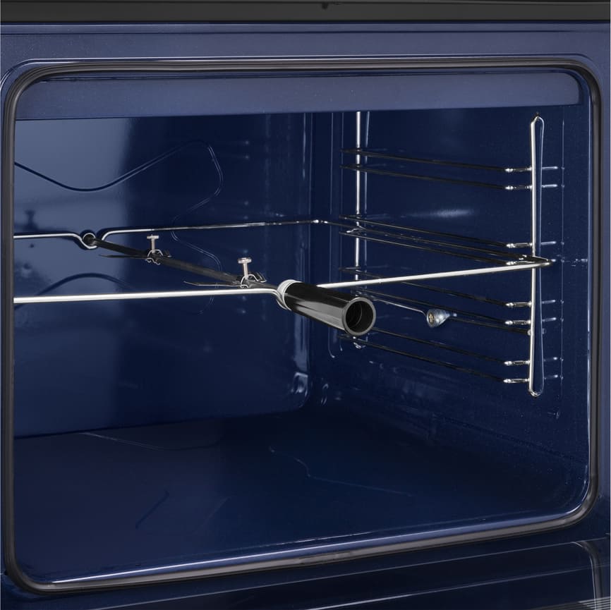 Внутренняя поверхность имеет специальное защитное покрытие: эмаль хорошо аккумулирует и держит тепло, не нуждается в специфическом уходе. Следуйте инструкции для удаления загрязнений — и прибор прослужит вам много лет без повреждений. Продуманная система направляющих для противней предупреждает падение тяжелой посуды при ее загрузке и извлечении: в этой модели используются хромированные элементы. Приятный бонус — специальное отделение для хранения посуды и аксессуаров.