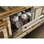 Гораздо разнообразнее представлена фурнитура в моделях в классическом, средиземноморском, деревенском или ретро-дизайне. Так, модели производства Lofra оснащаются фигурными рейлингами и поворотными переключателями цвета латуни, состаренного серебра, хрома, золота. В варочных центрах La Cornue интерес представляет круглая накладная ручка дверцы духовки серебристого цвета. Фурнитурой в стиле ретро оснащаются варочные центры производства Smeg, Kaiser, Bertazzoni, но особенно разнообразны и оригинальны модели производства итальянской компании Restart с фурнитурой из меди и латуни. Каждая такая модель изготавливается по индивидуальному проекту, и покупатель может выбрать цвет и форму переключателей, дверцы и ручек духовых шкафов и другие элементы дизайна.