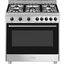 Варочный центр Smeg B901GMXI9 с газовой варочной панелью и электрической духовкой — прочное и надежное кухонное оборудование в корпусе из нержавеющей стали. Ножки можно отрегулировать по высоте, в нижней части находится ящик для посуды. Ширина варочного центра составляет 90 см, в верхней части фасада расположены поворотные переключатели для регулировки параметров работы. Варочная поверхность из нержавейки имеет пять конфорок различной мощности, в том числе центральную конфорку быстрого нагрева. Для размещения посуды служат прочные чугунные решетки, а для включения конфорок используется электроподжиг. Защита «газ-контроль» прекращает подачу газа, если пламя случайно погаснет.