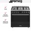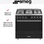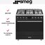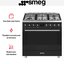 Комбинированная плита Smeg C9GMMB2 — отличный выбор как для квартиры, так и для частного дома. Цвет корпуса черный матовый, он гармонично сочетается с мебелью и техникой похожих оттенков, а также может интересно выглядеть на контрасте с ними. Для управления используется удобная и понятная электронная система. Благодаря ей выбирать режимы приготовления и настраивать параметры температуры очень просто. Основная информация о процессе отображается на дисплее. Переключатели не только выполняют техническую функцию, но и поддерживают общий дизайн; тип элементов: сенсорные + поворотные.