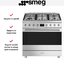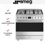 Комбинированная плита Smeg C9GMX2 — отличный выбор как для квартиры, так и для частного дома. Цвет корпуса нержавеющая сталь, он гармонично сочетается с мебелью и техникой похожих оттенков, а также может интересно выглядеть на контрасте с ними. Для управления используется удобная и понятная электронная система. Благодаря ей выбирать режимы приготовления и настраивать параметры температуры очень просто. Основная информация о процессе отображается на дисплее. Переключатели не только выполняют техническую функцию, но и поддерживают общий дизайн; тип элементов: сенсорные + поворотные.