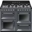 Smeg TR4110GR — отдельностоящий варочный центр. Оснащен 1 основной и 2 вспомогательными духовками, газовой варочной панелью с 7 горелками. Управляется с помощью поворотных переключателей и LЕD-дисплея с 5 кнопками. Все духовые шкафы изнутри покрыты эмалью EverClean, имеют металлические направляющие и 3 стекла в дверце. Варочная панель изготовлена из стеклокерамики и оборудована мощной конфоркой WOK для использования посуды с круглым дном. Духовки оснащены функцией гриля и конвекции и имеют от 1 до 6 режимов работы, в том числе размораживание продуктов. Трехслойное остекление дверей предотвращает риск ожогов.