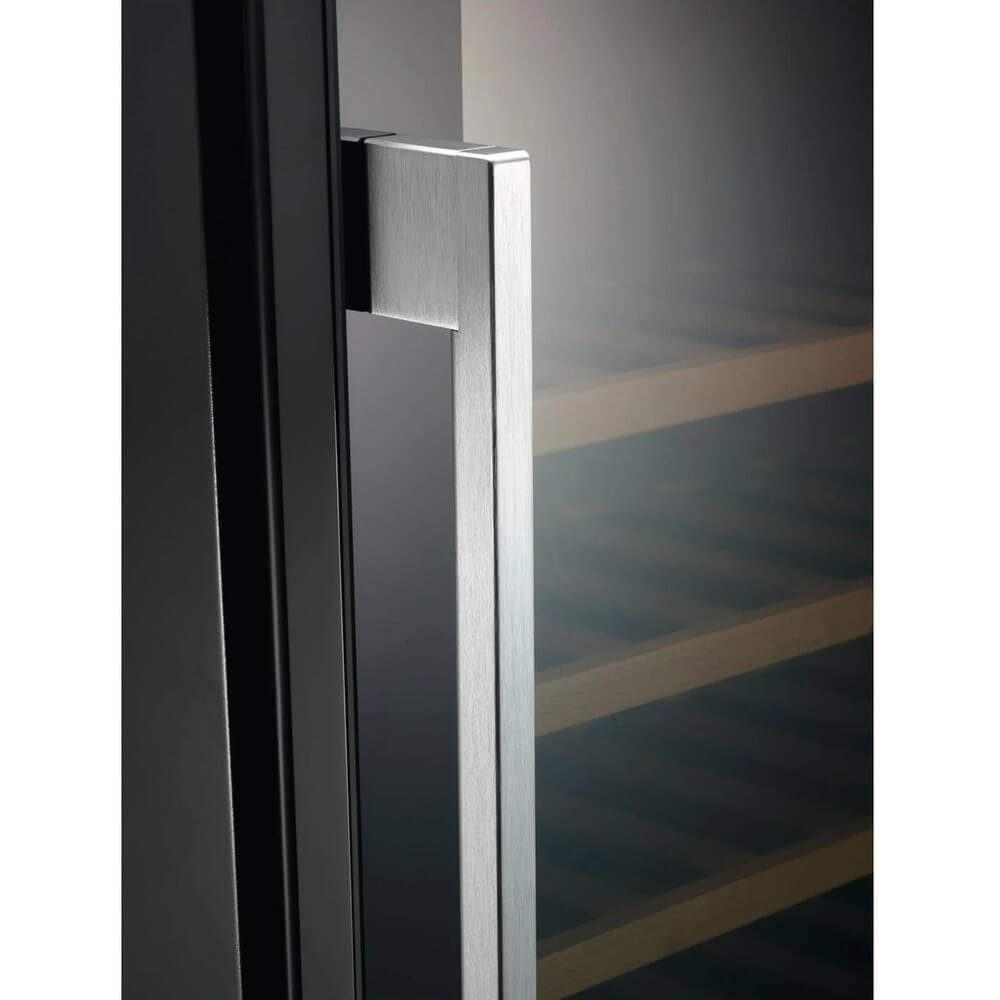 Вид и расположение ручки на дверце винного шкафа зависит прежде всего от дизайна и стиля изделия. В классических холодильниках со корпусом из дерева чаще всего используется внешняя ручка «под старину», изготовленная из металла — например, латуни, под бронзу или медь. Модели в современном стиле оснащаются внешними ручками из металла, выполненными в минималистическом стиле, или скрытыми ручками, создающими снаружи гладкую поверхность, за которой легко ухаживать. Некоторые производители предлагают винные шкафы без ручек: дверца у них открывается нажатием на среднюю или верхнюю часть.