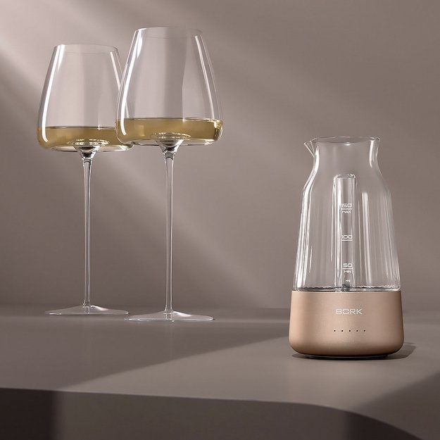 Встроенная система аэрации мгновенно очищает поток воздуха от азота и углекислого газа. Благодаря беспрерывной подаче кислорода раскрывается глубокий вкус и аромат вина, смягчаются танины и нейтрализуются сивушные масла. Беспроводной компактный декантер идеально подходит для насыщения напитка от 50 до 150 мл.