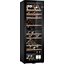 Производители предлагают винные шкафы, оснащенные одной, двумя, тремя и четырьмя камерами, которые могут располагаться как друг под другом, так бок и бок. Самые популярные — однокамерные модели, ассортимент которых особенно широк, но втором месте — двухкамерные. Над заметить, что количество камер не зависит напрямую от габаритов изделия: например, однокамерные модели увеличенных габаритов — далеко не редкость. Их высота может варьироваться в пределах от 14 см до 219 см, а ширина — от 13 см до 150 см.