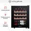 Стеклянная дверь — дополнительный изящный штрих к общему дизайну модели. Специальное покрытие защищает вино от влияния ультрафиолетовых лучей, которые проникают, если шкаф находится в солнечной комнате. Цвет корпуса — черный.