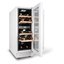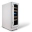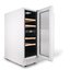Стеклянная дверь — дополнительный изящный штрих к общему дизайну модели. Специальное покрытие защищает вино от влияния ультрафиолетовых лучей, которые проникают, если шкаф находится в солнечной комнате. Цвет корпуса — белый. Дверь можно перевесить на другую сторону, поэтому вариантов размещения его в доме становится больше.