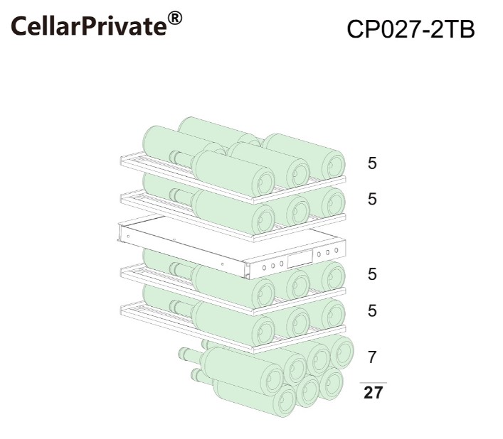 Винный холодильник CellarPrivate CP027-2TB имеет две температурные зоны, в которых одновременно можно хранить разные сорта алкоголя и выставлять разные сочетания настроек. Он встраивается в нишу, что удобно, если у вас ограничен метраж помещения. Благодаря компактным размерам данная модель — отличный выбор для офиса, гостиничного номера. Количество бутылок, которое можно разместить с учетом полной комплектации и из расчета объема бутылки 0,75 л, — 27 шт.