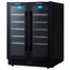 Стеклянная дверь — дополнительный изящный штрих к общему дизайну модели. Специальное покрытие защищает вино от влияния ультрафиолетовых лучей, которые проникают, если шкаф находится в солнечной комнате. Цвет корпуса — черный.