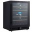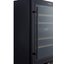 Стеклянная дверь — дополнительный изящный штрих к общему дизайну модели. Специальное покрытие защищает вино от влияния ультрафиолетовых лучей, которые проникают, если шкаф находится в солнечной комнате. Цвет корпуса — черный. Дверь можно перевесить на другую сторону, поэтому вариантов размещения его в доме становится больше.