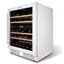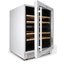 Стеклянная дверь — дополнительный изящный штрих к общему дизайну модели. Специальное покрытие защищает вино от влияния ультрафиолетовых лучей, которые проникают, если шкаф находится в солнечной комнате. Цвет корпуса — белый. Дверь можно перевесить на другую сторону, поэтому вариантов размещения его в доме становится больше.